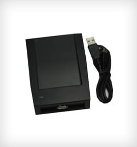 Wykorzystujący technologie RFID 13,50 Mhz. czytnik CPM-01 został stworzony, by wspomóc ochronę komputerów PC, identyfikację / autoryzację użytkowników oraz ochronę ich prywatności. Urządzenie odczytuje unikalny kod identyfikujący kartę zbliżeniową użytkownika. Ułatwia logowanie do systemów operacyjnych, programów itp. Czytnik nabiurkowy.