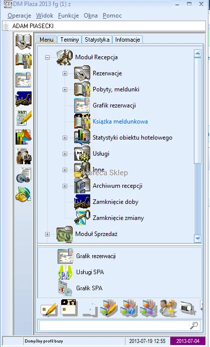 Sprawdzanie bieżących meldunków w każdej chwili oraz zmiana ich parametrów (domeldowanie osoby, zmiana pokoju, zmiana pakietu usług dla pokoju).