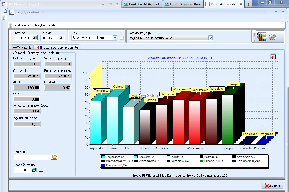 Zestawienie pokoi i miejsc zajętych, wolnych, zarezerwowanych w podanym dniu lub okresie.