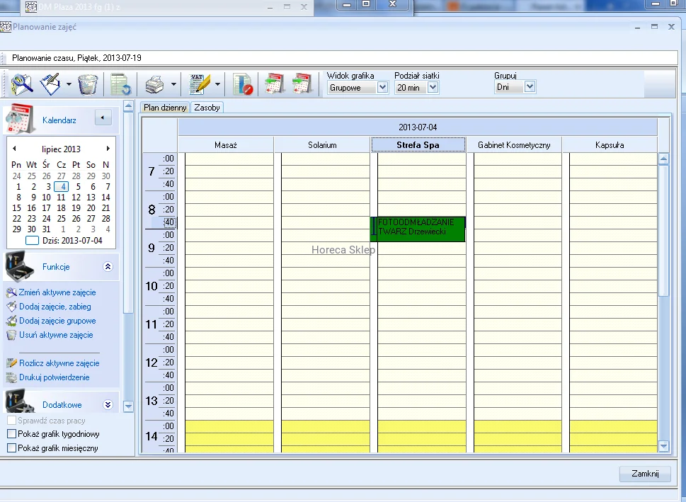 Moduł SPA obejmuje szereg zdarzeń mogących nastąpić w obiekcie hotelowym posiadającym gabinety zabiegowe SPA