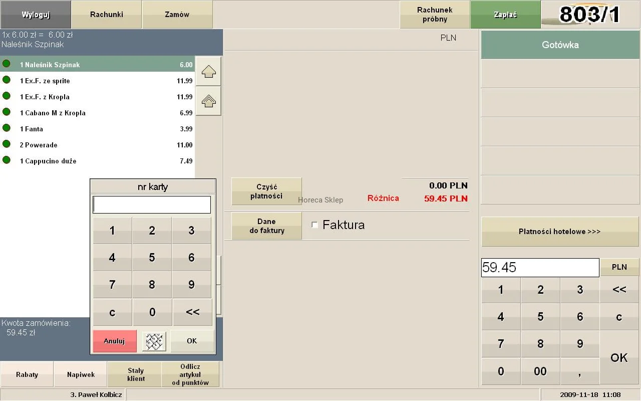 MODUŁ RESTAURACYJNY: POS przeznaczony jest do pracy w lokalu gastronomicznym, w którym istnieje konieczność otwierania i prowadzenia wielu rachunków przez jednego lub kilku kelnerów. Pomocny jest w tym graficzny plan sal i stolików oraz dodatkowe funkcje, takie jak np. podział stolika, przenoszenie, łączenie stolików