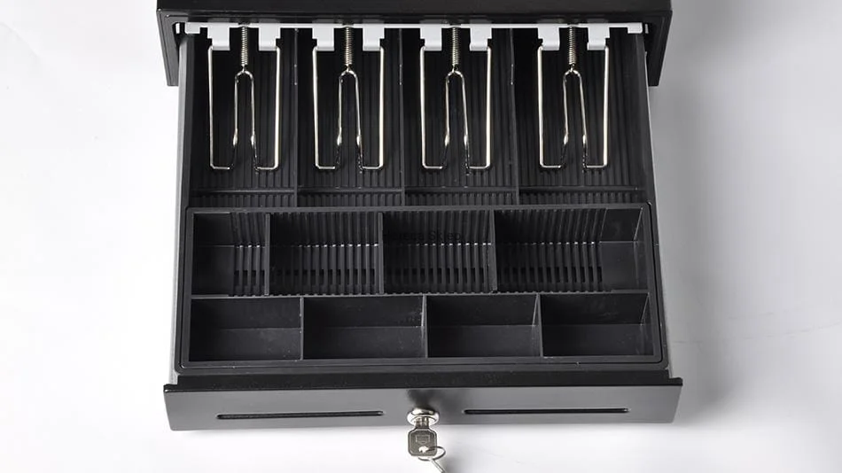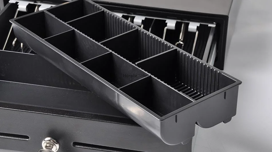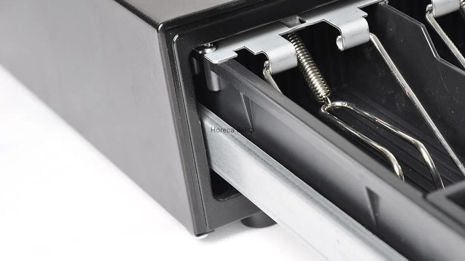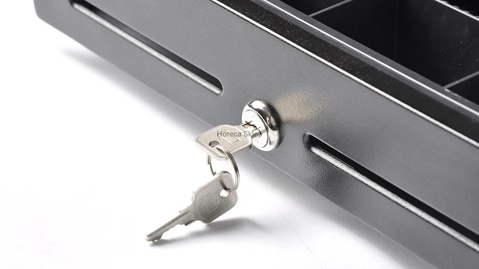 - Dwie możliwości otwierania szuflady: poleceniem z kasy lub za pomocą klucza (również możliwość otwarcia awaryjnego)
