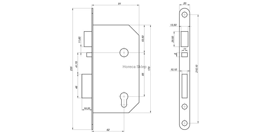 Dystans klamkowy: 85 mm